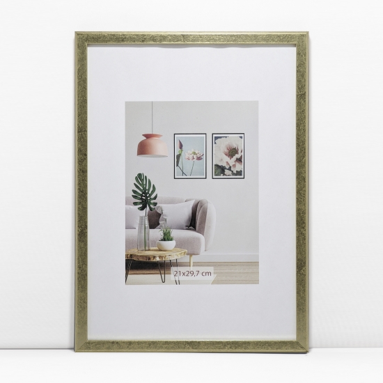 Rama foto de culoare aurie cu acoperire lucioasa, poate fi pusa pe masa de lucru, sau in orice alt loc din casa sau birou